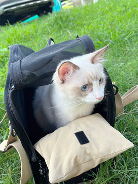 My favorite human! Are you ready for an adventure? This lightweight, stylish carrier is our magic ticket to fun! With fluffy pads for snuggly naps and a large clever elastic window 🤩 that lets me pop my head out and chat with you anytime, we’re all set for the best times ahead!